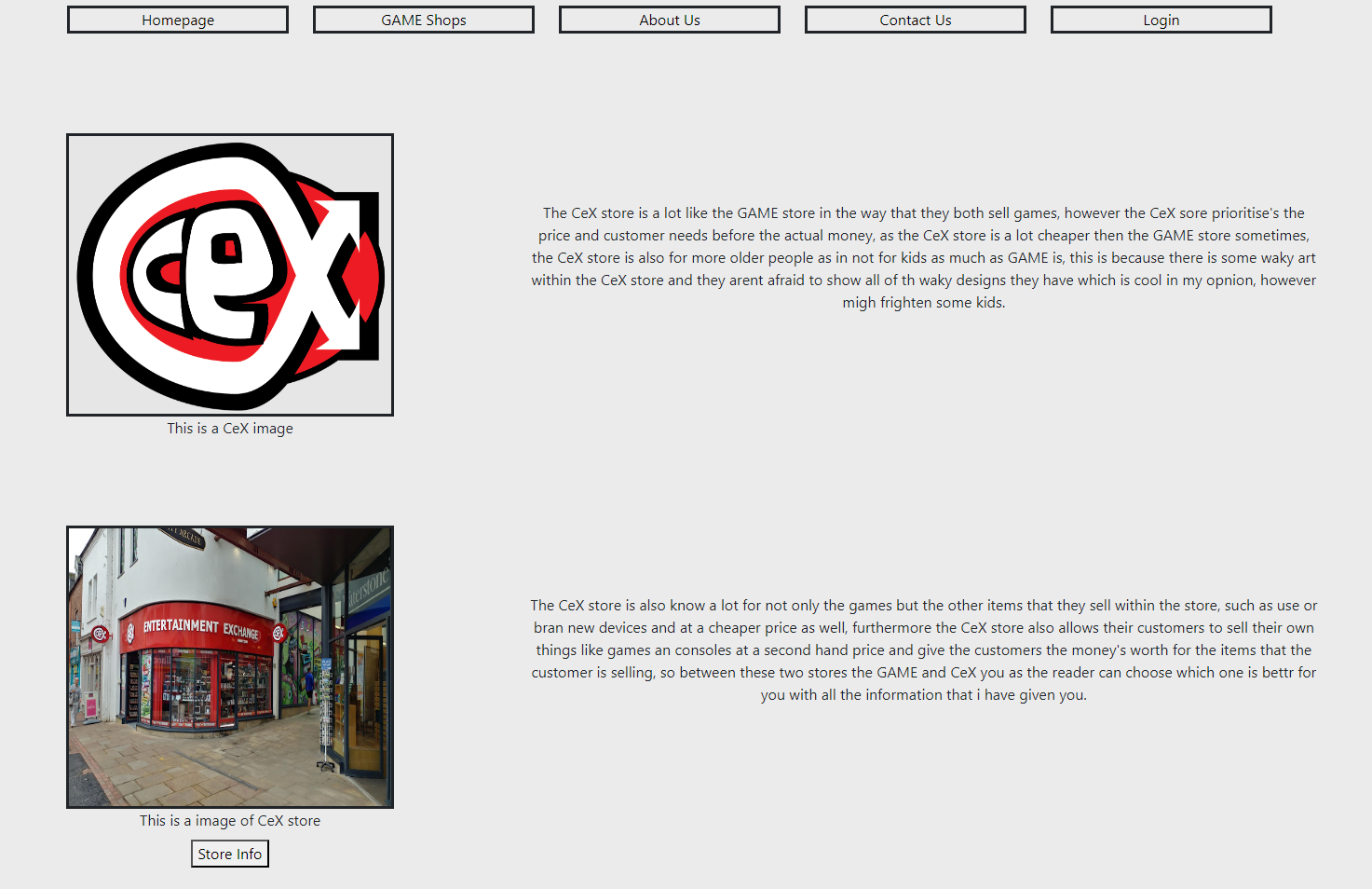 Games Shop Review Website